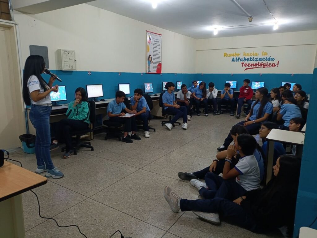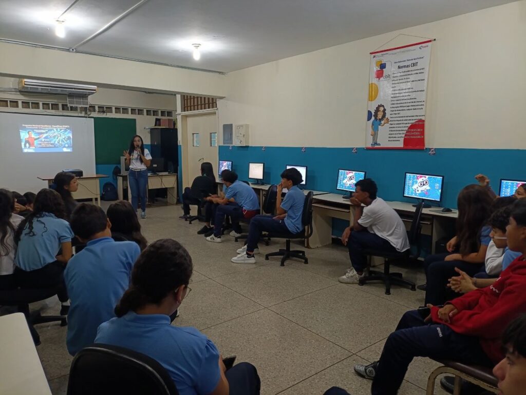 (Valera, 06 de abril).- En el marco del Programa nacional Semilleros Científicos se visitó el Liceo «Antonio José Pacheco» ubicado en la Urbanización José Felix Rivas (Plata II) en el municipio Valera. En esta oportunidad para brindar a los jóvenes de tercer año formación sobre el Ideario Bolivariano específicamente el Discurso del Libertador Simón Bolívar ante la sociedad patriótica. Los estudiantes realizaron un debate y análisis escrito sobre estos hechos históricos, desarrollando el pensamiento critico y reflexivo sobre los pasos del héroe patriota. De esta manera desde la Gran Misión Ciencia, Tecnología e Innovación «Dr Humberto Fernández-Morán» se reafirma el compromiso de contribuir a la formación de una generación genial con identidad nacional y visión científica soberana.