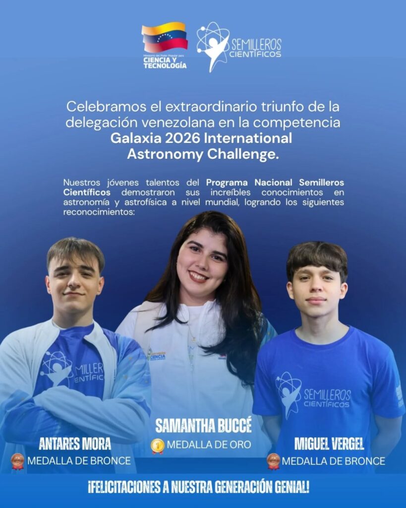 Es un verdadero orgullo anunciar que tres brillantes representantes del Programa Nacional Semilleros Científicos dejaron su huella en la International Astronomy Challenge Galaxia 2026, celebrada en Indonesia, participando de manera virtual y demostrando que el talento venezolano no conoce fronteras.